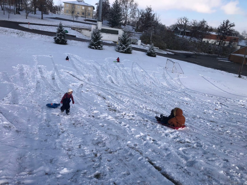 אחרי שעה כולנו כבר גולשים על שלג בפעם הראשונה בחיים.